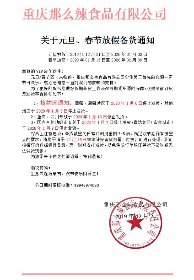 關于那么辣春節(jié)物流停運發(fā)貨通知